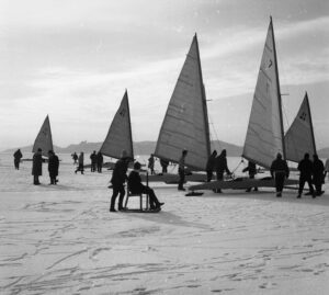 Kép: Fortepan 65618 – Jégvitorlások Balatonfüreden 1968-ban.