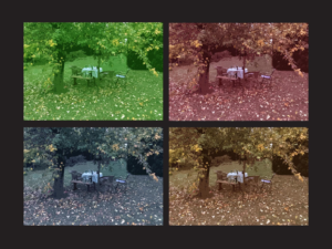 Csak egy dombvonulat volt hajdanán gyümölcsössel, ma Szentendre része. Időutazás a kép, az 1930-as évek végén fiatal festőművészek alkotóhelye lett. A korábbi gyümölcsösök, nyaralók és hétvégi telkek helyére családi házak épültek. Maradt még nyomokban néhány villa, múltat idéző kert. A kép láttán a veszteség még fájóbb, hogy enyhítsem, kibontom az utolsó üveg rác ürmösömet, ami mellé mézes gesztenye dukál. Az 1690 után betelepülő, törökök elől menekülő szerbek áldott emléke az ital, néhány korty után ámulok a kert színeváltozásán. Aminek születésénél a fotoshop bábáskodott.