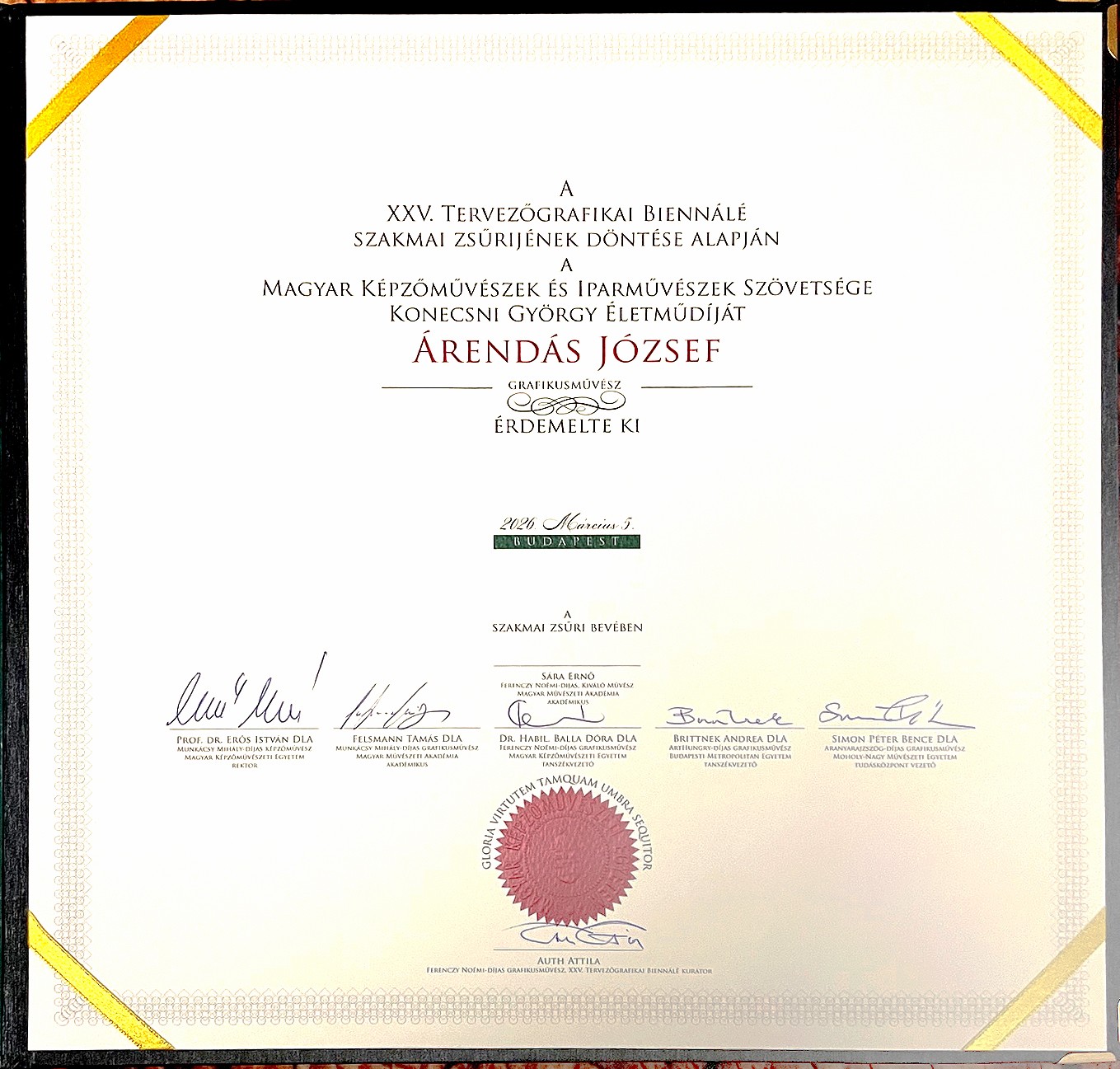 Külön is köszöntjük munkatársunkat, a Konecsni György életműdijas Árendás József grafikusművészt. Kedves Jóska, szeretettel kívánunk minden jót, – és hozzá jó egészséget.